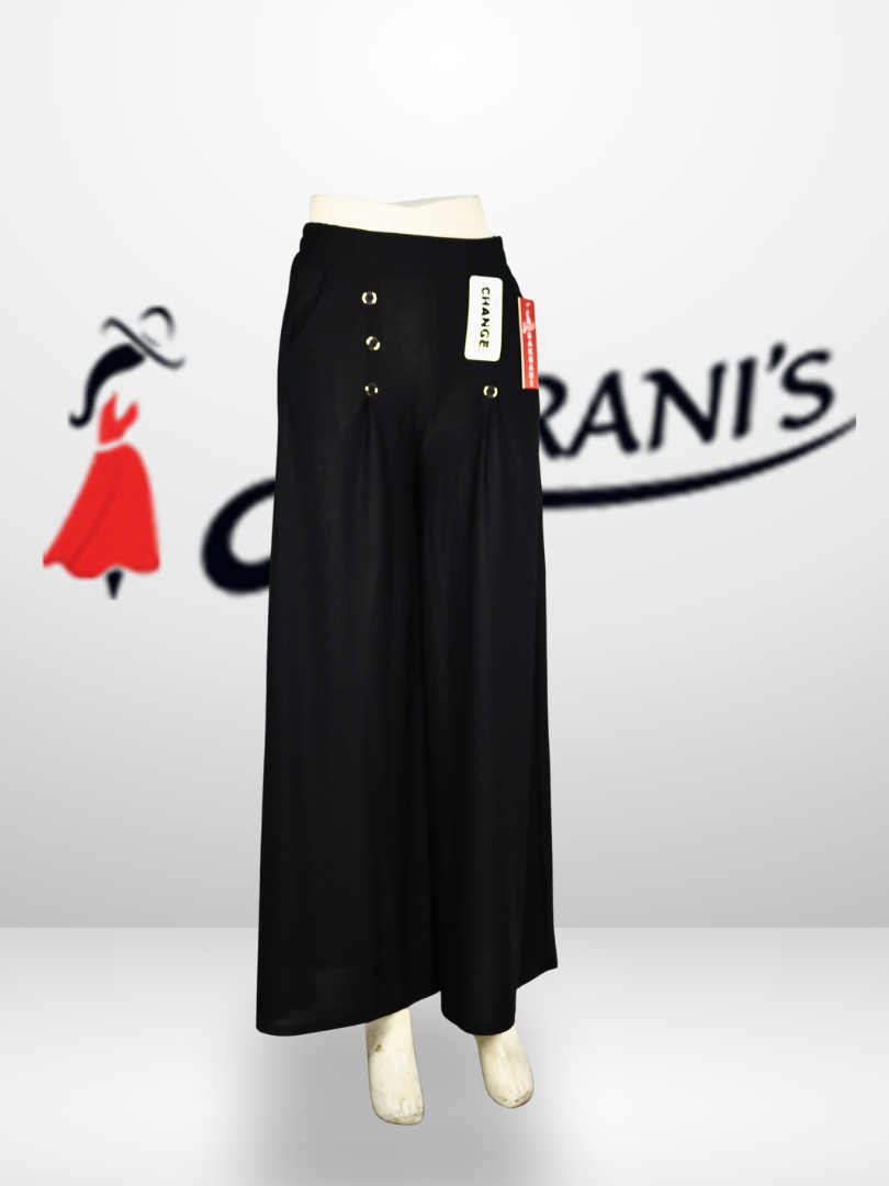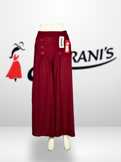 These stylish Eastern-inspired wide-leg pants feature elegant front button detailing that adds a modern and sophisticated touch. Crafted from soft, breathable fabric, they provide all-day comfort with a flattering high-waist fit. The flowy silhouette enhances movement while maintaining a graceful, classy look. Perfect for casual outings, office wear, or semi-formal occasions, these pants pair beautifully with kurtis, tops, or shirts. Available in classic black and rich maroon colors, they are a versatile wardrobe essential.