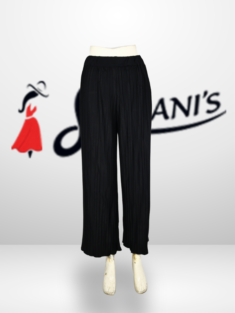 These elegant Eastern-style pleated pants are crafted from soft, breathable fabric for all-day comfort. The wide-leg design with fine pleats creates a graceful and flattering silhouette, while the elastic waistband ensures a relaxed and easy fit. Perfect for casual wear, office looks, or semi-formal occasions, these pants can be effortlessly paired with kurtis, tops, or tunics for a chic and modern appearance.