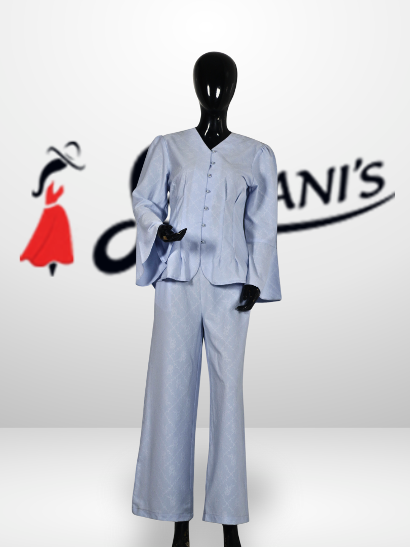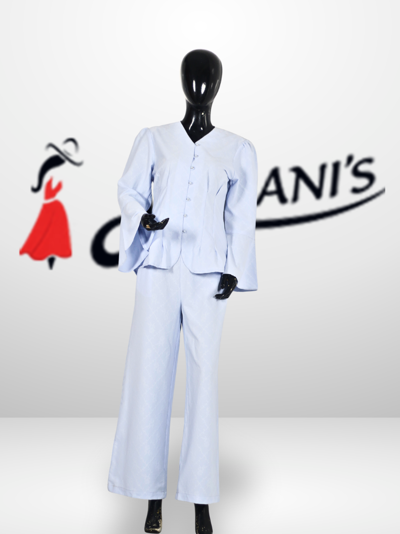 Enhance your everyday style with this elegant Solid Textured Co-Ord Set for Women, crafted for comfort and a refined look. The set features a button-down top with a flattering V-neckline and softly flared sleeves, paired with straight-cut trousers for a balanced and graceful silhouette.