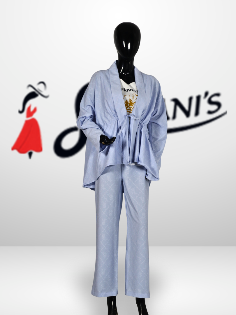 Upgrade your everyday style with this elegant Tie-Up Front Co-Ord Set for Women, designed for comfort and a modern, effortless look. The set features a flowy, relaxed-fit top with a flattering tie-up front and wide sleeves, paired with matching straight-cut trousers for a balanced silhouette.