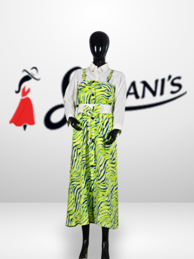 This women’s layered printed midi dress features a stylish inner shirt paired with a sleeveless printed overlay, creating a modern and elegant look. Made from lightweight, comfortable fabric, it offers a relaxed fit that drapes beautifully. The waist belt enhances the silhouette, while the eye-catching prints add a trendy touch. Perfect for casual outings, brunches, or semi-formal occasions, this versatile dress can be styled with heels or flats for effortless everyday elegance.