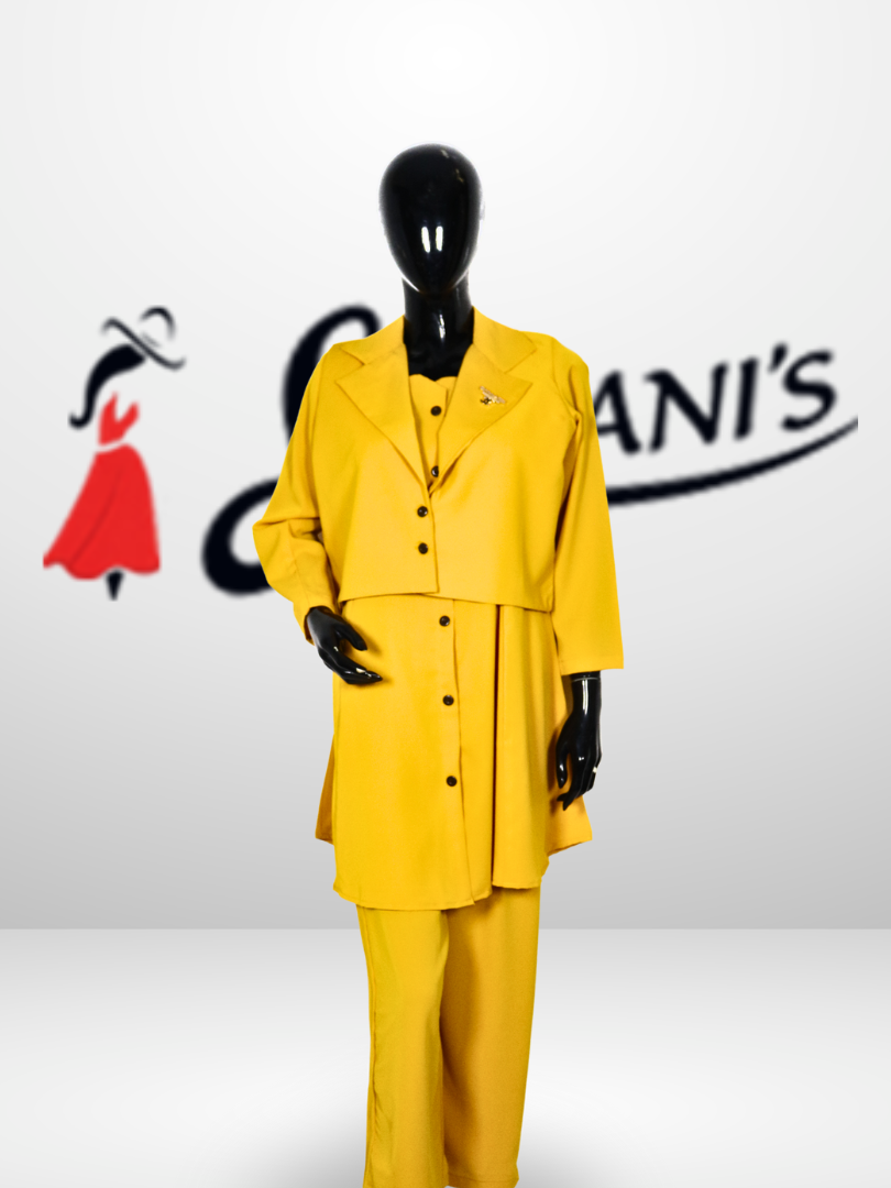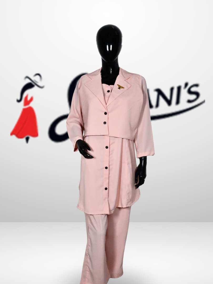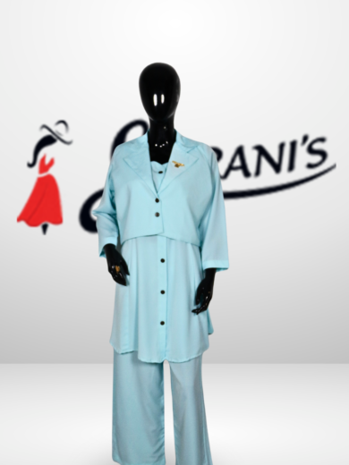 This stylish two-piece co-ord set features a button-down tunic with a smart layered look and matching straight-fit pants. Made from soft, breathable fabric, it offers a comfortable yet polished appearance, perfect for casual outings, office wear, or semi-formal occasions.