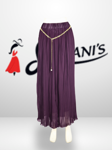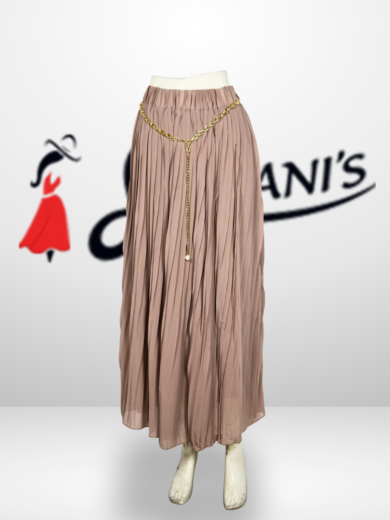 Women’s Elegant Pleated Maxi Skirt with Gold Chain Belt